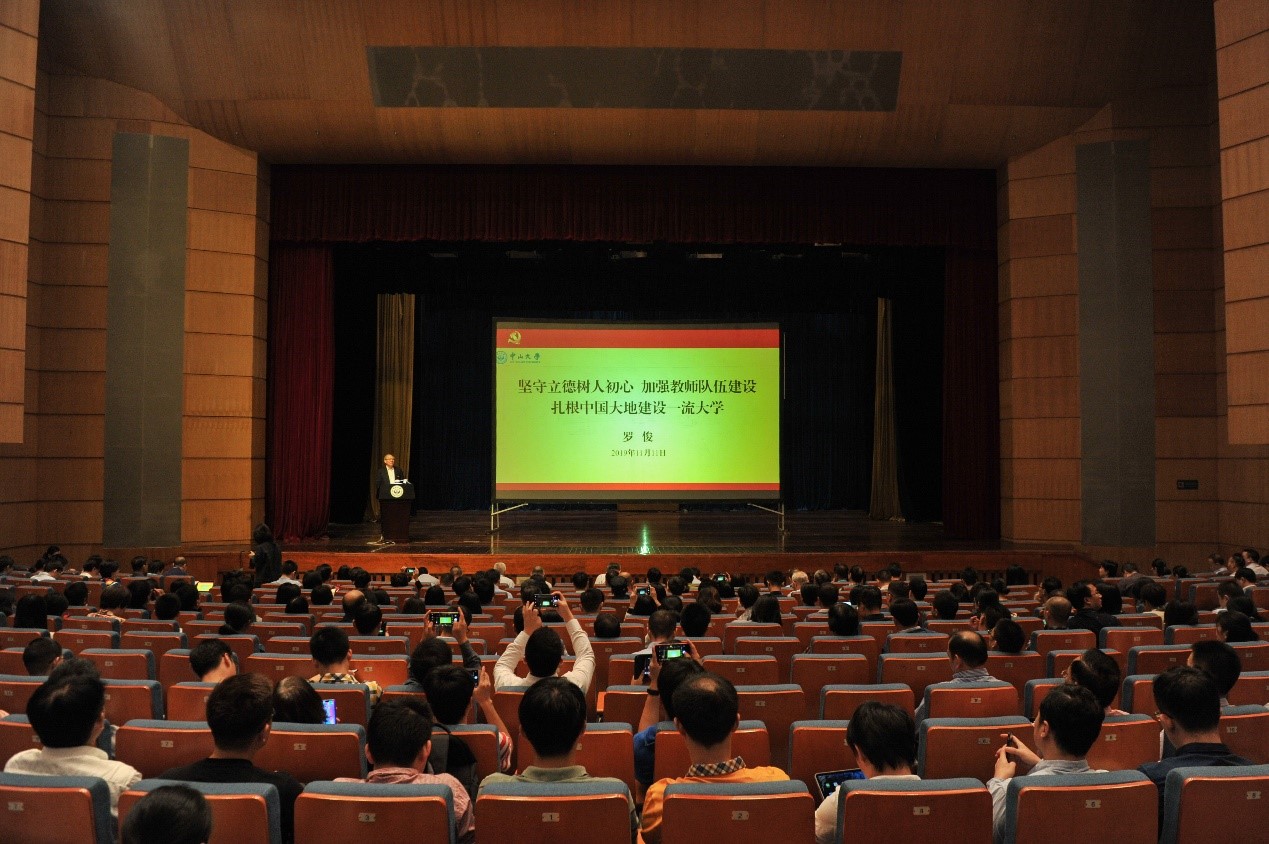 11月11日上午,我校在广州校区南校园梁銶琚堂举办best365中国官方网站“不忘初心、牢记使命”主题教育专题党课,校党委副书记、校长罗俊讲授“坚守立德树人初心 加强教师队伍建设 扎根中国大地建设一流大学”专题党课。专题党课由校党委书记陈春声主持。