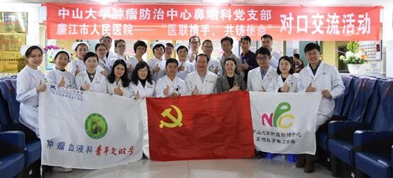 在院外,带队前往基层,通过鼻咽癌筛查、科普讲座、图片展览、义诊咨询,让当地居民科学认识鼻咽癌。同时,还与鼻咽癌高发的四会、中山等地医院的党组织联系,围绕鼻咽癌规范化诊疗举行联合党日活动,通过教学查房、疑难病例讨论、前沿学术交流等推广新理念、新技术、新标准,切实提升基层医院鼻咽癌的防治水平。