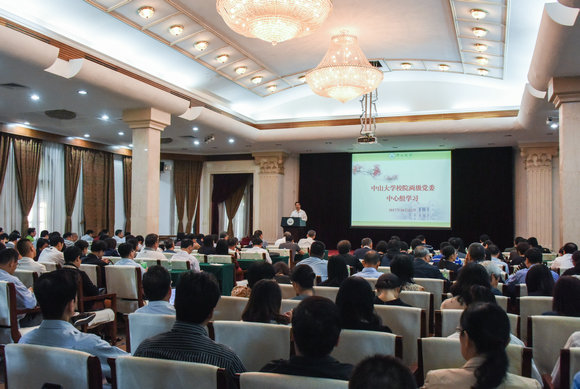 10月31日上午,我校召开校院两级中心组学习会议,专题学习党的十九大精神,十九大代表、校党委书记陈春声,党委副书记、校长罗俊分别主讲题为《认真学习党章修正案,切实加强学校党的建设》《学习十九大报告,提高一流大学内涵发展水平》的党课。会议由党委副书记余敏斌主持。全体校领导、校长助理,各二级党委(党总支)、直属党支部、党工委书记,机关各部门负责人,各学院、直属系、直属单位、附属医院(单位)负责人,产业集团负责人等参加会议。
