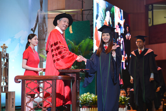 对于毕业生而言,庄严隆重的毕业典礼不仅仅带给他们深刻的仪式感,也让他们感受到了学校在细节里蕴含的脉脉温情。岭南学院的硕士毕业生林义伟表示,毕业典礼充分唤起了他对母校的感情:“学校给我们准备了这么隆重的仪式,我觉得特别兴奋。权杖进入会场的时候,我全身的鸡皮疙瘩都起来了。跟校长握手真的特别有意义,这让我更加感受到了道别的意味。”林义伟是在工作十年之后重新返回校园学习的,这样特别的经历也让他对中大的学习更有感触。他感谢中大提供了一个很好的发展平台:“我们不仅有很多到国外学校、公司交流的机会,也能聆听到很多海内外名校教授的演讲与讲座。”