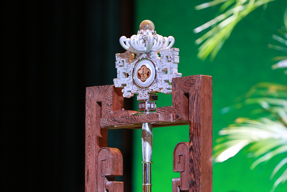 权杖入场,伴随着现场毕业生的欢呼,现场屏幕和实时转播会随大门的开启出现绚丽的特效。权杖安置或离开主礼台权杖架时,屏幕中也会出现威严而神圣的光芒特效。一点的小巧思,为庄重的毕业典礼增添了几分惊喜。
