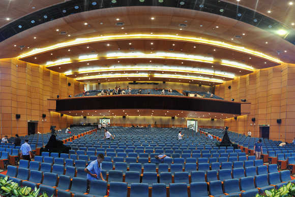 六月初,火辣的太阳小露盛夏的威力,总务处的工作人员已经开始在会场排查用水用电安全隐患。这是每一年后勤人最忙碌的时刻:检查各处水电设施是否正常,维修更换老化电源线路,处理供水设备滴漏,更新因白蚁而损坏的木质门框、地板、柜子......由于天气炎热,梁銶琚堂又是校园活动的聚集地,会场内的三台中央空调总是同时处于高负荷的运转状态,会有停转的隐患。为确保室内温度适宜,总务处的工作人员多次维修,更换了防护网,清除了堵塞外机水冷槽的树叶。