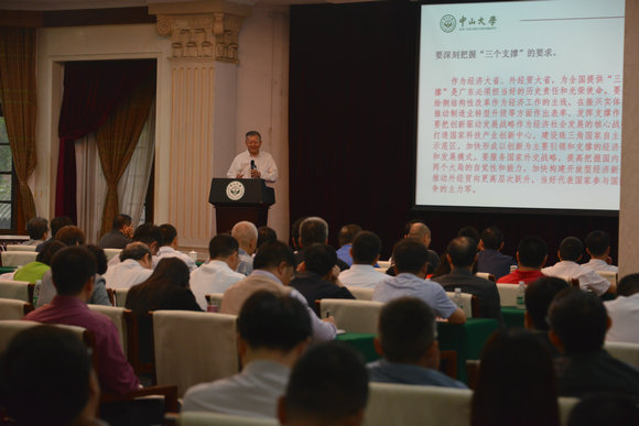 4月25日上午,我校在广州校区南校园召开校院两级党委中心组专题学习会议,学习习近平总书记对广东工作重要批示精神,校党委书记陈春声作辅导报告。各二级党组织(党总支)中心组成员,机关各部、处、室正职近280人参加会议。