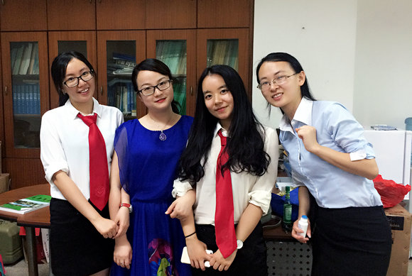 陈诗诗副书记(左二)与三位赴西藏支教的毕业生合影