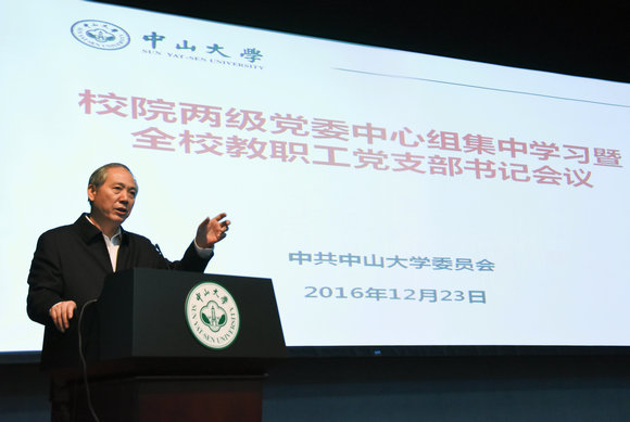 12月23日上午,我校在广州校区南校园召开校院两级党委中心组集中学习暨全校教职工党支部书记会议,学习贯彻全国高校思想政治工作会议精神,校党委副书记、纪委书记国亚萍主持会议。校院两级党委中心组学习成员、全校教职工党支部书记及职能部门正副职负责人近600人参加了会议。