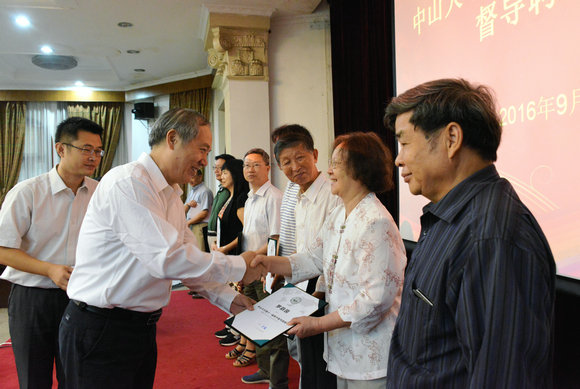 罗俊校长为督导团组长代表们颁发聘书(金凤摄)