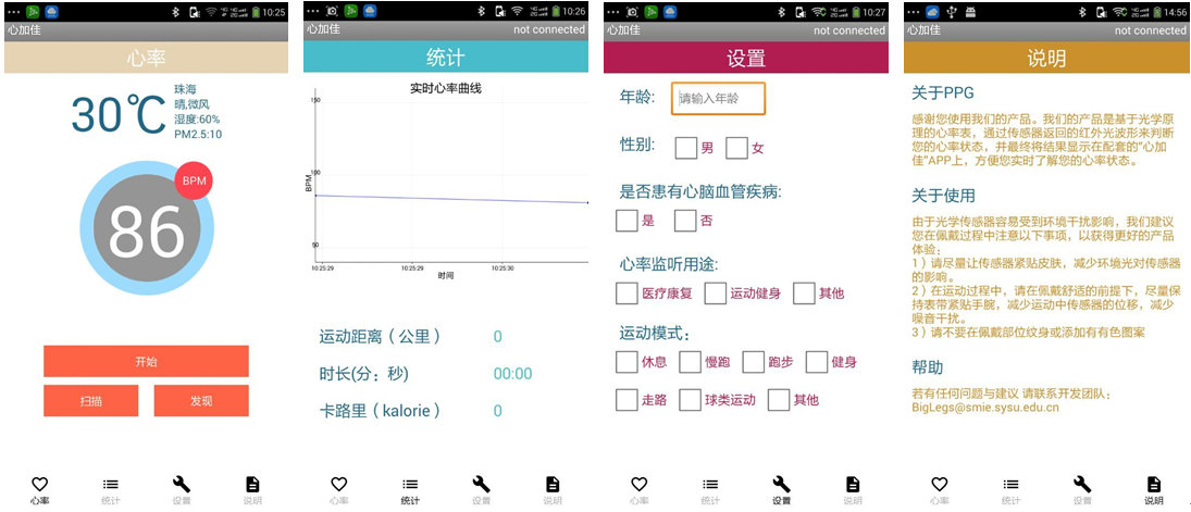 参赛作品“基于动态PPG信号处理的心率表”运用了光学体积描记术(PPG),使得心率可在运动状态下被精确测量,并且硬件小巧,可穿戴。经过硬件采集和算法处理后的心率值,在手机app上进行数据分析和呈现,同时将心率与身体状态信息发送至云平台,有望通过大数据分析提前诊断和预测疾病,提高人们的生活质量。