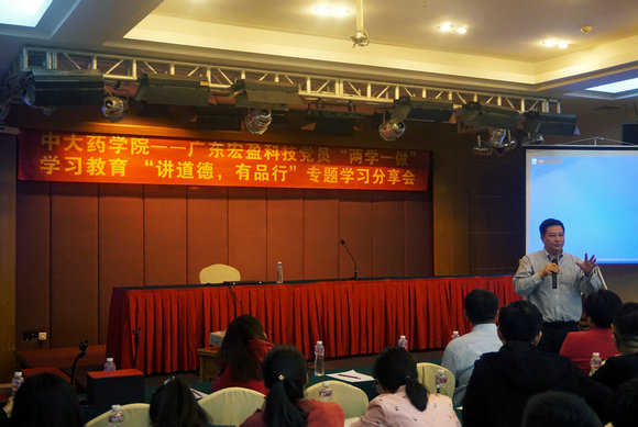 参观结束后,药学院师生还与该公司党员代表共同开展了“两学一做”学习教育“讲道德 有品行”专题学习分享会。药学院师生党员、入党积极分子和民主党派代表与企业党员围绕习近平总书记在会见第四届全国道德模范及提名奖获得者时的讲话精神、出国旅游不文明现象以及“青岛大度哥”、“罗一笑事件”等近期网络热点事件进行了讨论,并表示要加强修养,学会包容,注意引导,做一个讲诚信、明是非、敢于担当的人,为新药研发和国民医疗健康事业做出更大贡献。