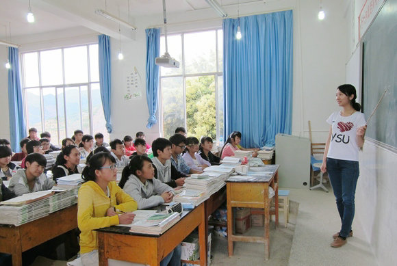 在鲁史中学,我担任高中一个班的英语老师和初中英语代课老师。凤庆县的中学教育要求非常严格,教学强度也很大。作为英语老师,每周有三天,都要早上7:15前到达教室上早读课。学校周末也要补课,所以我没有周末,一个月只有3天假期。由于学生的基础薄弱,独立学习能力非常差,学校把晚自习都安排上课,任课老师要从晚上7点半一直上到10点。教学虽然很辛苦,可是看着学生们每周都翻山越岭,徒步走大半天的坎坷山路来上学,就觉得一定不能辜负他们的信任。我总是尽自己最大的努力备好每一节课,上好每一堂课。我所教班级的英语成绩也一直保持在年级第一。