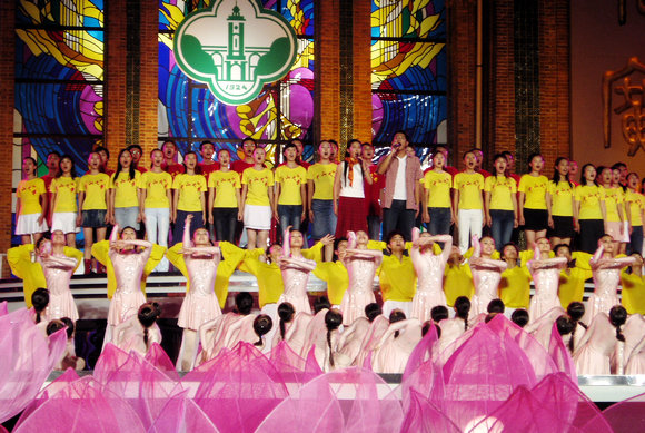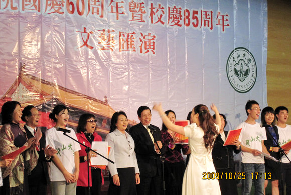 80周年校庆晚会上,在best365中国官方网站艺术教育中心徐红副教授的指导下,《山高水长》作为晚会压轴的歌曲,由中大附属小学学生、校园歌手、学生合唱团、教工合唱团、老教授合唱团的团员们共同演唱,感染了在场的众多师生。