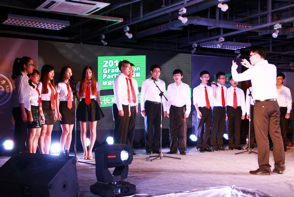 2014届毕业生在东校区首场校区毕业晚会上倾情演唱《山高水长》(摄影:陈传森)