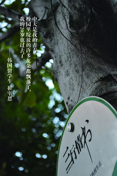 又是一年毕业时,这样的时节,总催生许多感人的瞬间和难忘的细节。在传播与设计学院大厅里的毕业留言墙上,写满了师生的感言,有的是告别,有的是祝福,有的是戏谑,更多的是“我爱中大”和“我爱传设院”的留言。一个女孩子正低头在墙的下端写着“真舍不得走”的字样,旁边的桌子上,几个学生在就业中心发放的纪念册上使劲地盖着有学院楼标志的印章,恨不得盖满整本册子,有的同学还把印章盖在了自己的手上。说起这样做的原因时,学生说纪念册中选了许多三行情书,诗情画意的,令人怀旧,更对母校和学院依依不舍。