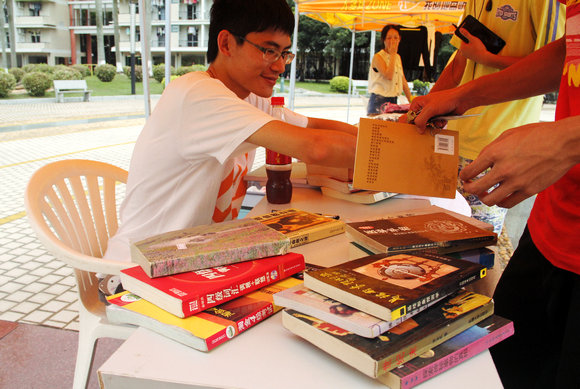 6月20日、21日,在榕园广场上,热热闹闹的跳蚤市场增添了一道靓丽的风景。摊位前,摆满了各式生活用品、书籍文具、饰品玩具等,琳琅满目。摊主主要是2014届毕业生,也有即将回迁广州校区的同学等。他们的摊位前,吸引了不少同学。
