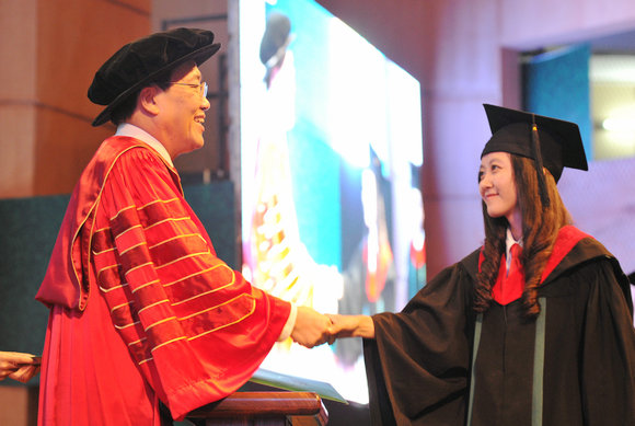 翻译学院的小马同学说:“在毕业典礼的现场,感到非常激动,又有些伤感,整场典礼最难忘的就是与校长握手的瞬间。”