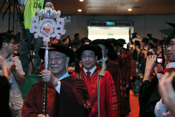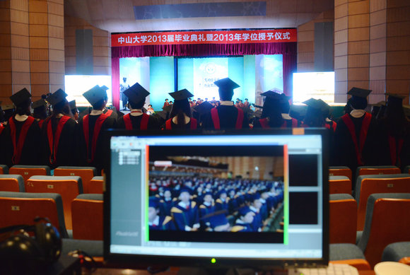 自1982年11月27日,我校举行首批授予硕士、学士学位颁发证书典礼后,其形式和地点几经更易,最终于2007年形成如今的体制。那一年的典礼,不仅囊括了学位服和权杖两个元素,更将宣读中山先生毕业训词作为一项必不可少的程序。当日,康乐园齐聚本、硕、博约1万多名毕业生,校长及主礼教授由权杖引导入场,校长庄严宣读毕业训词,让毕业生聆听最后一次教诲。