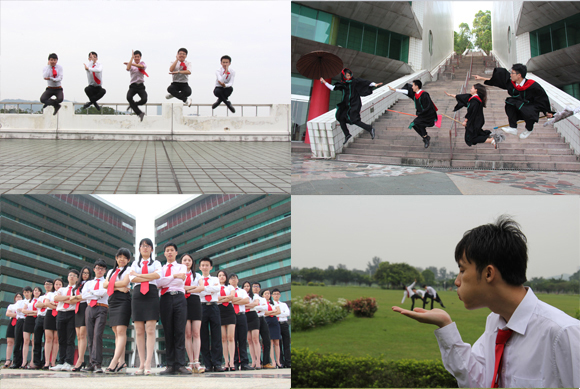 这组“毕业照”的主角都是中大09级海洋学院的毕业生,“因为中大被戏称为‘孙逸仙魔法学校’,我们也想在照片中体现这一特色。”主角之一郑同学说道,“毕业照是想留下些美好的回忆,我们的拍摄一天就完成了,好像恰好拍出了一组看似不错的照片。我们都喜欢海院这个集体,开心就足够了。”