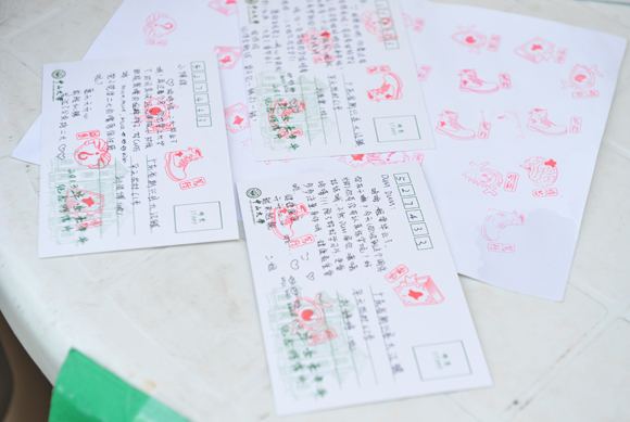 明信片跟往年一样,很受关注。一套共有16张,毕业生可凭学生证每人免费领取三张,学校会统一提供免费寄送服务。来自东校区管理学院的毕业生小兰同学正认真地填写明信片,准备寄给父母和姐姐。