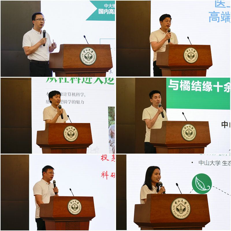 学员们逐一自我介绍后,管理学院汪林教授、附属第五医院何祎副研究员、哲学系(珠海)王轶教授、农学院周潇峰副教授、材料学院司锐教授、生态学院梁敏霞教授、孙逸仙纪念医院许小丁研究员等7位学员代表依次进行了主题分享。汪林教授以《行为管理科学,交叉融合创新》为题,分享了自己将行为科学交叉融合创新与学科发展方向联系起来,推动行为科学研究和教学面向前沿的成长历程。何祎副研究员以《医工交叉深度融合,高端科研仪器国产化》为题,介绍了医工交叉的研究特色,分享了自己从海外留学到回国建组,对接国家重大战略需求,努力推进高端科研仪器国产化的工作历程。王轶教授以《昨夜江边春水生》为题,以个人求学和工作经历为例,展现了学科交叉、多元化发展、兼容并包对于青年学者成长的重要意义。周潇峰副教授以《与橘结缘十余载,启航中大展未来》为题,讲述了自己研究柑橘黄龙病的求学历程,强调要把个人兴趣与国家需求相结合,才能不断取得突破性进展。司锐教授以《投身中大建设光源,科研工程协同发展》为题,介绍了自己围绕光源技术,聚焦服务“大科学装置”的科研历程,以及在推动深圳同步辐射光源的设计与进展中所取得的科研成果。梁敏霞教授以《寻天地万物共生之法,建绿水青山美丽中国》为题,讲述了将个人研究兴趣服务国家战略和粤港澳大湾区需求的成长故事,展现了生态人为学校生态学学科发展无悔付出、持续发力的优秀品质。许小丁研究员以《“理”清兴趣目标、“医”定坚持不懈——理学博士的医学科研之路》为题,分享了自己从理学进入医学的求学历程,以及在医学研究方面取得的创新成果,强调兴趣是最好的老师,认定目标后就要坚持不懈、持之以恒。