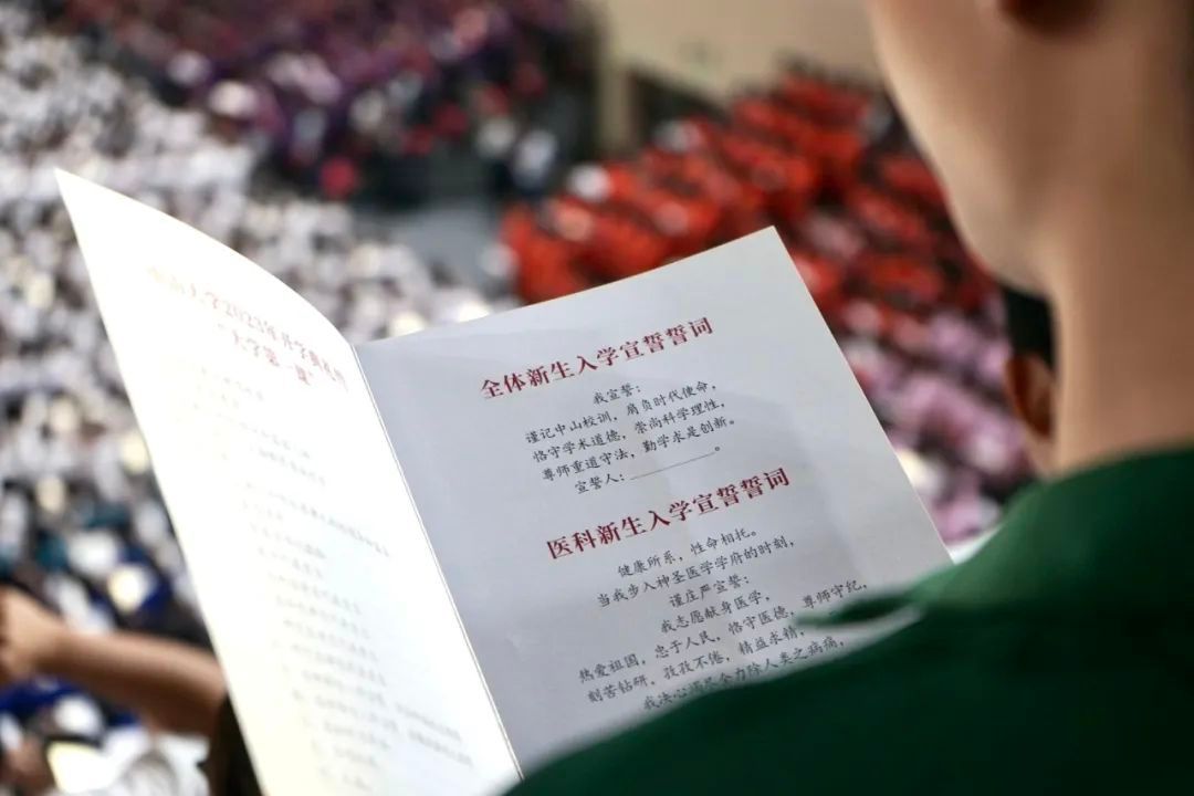 全体新生入学宣誓誓词:“谨记中山校训,肩负时代使命,恪守学术道德,崇尚科学理性,尊师重道守法,勤学求是创新。”