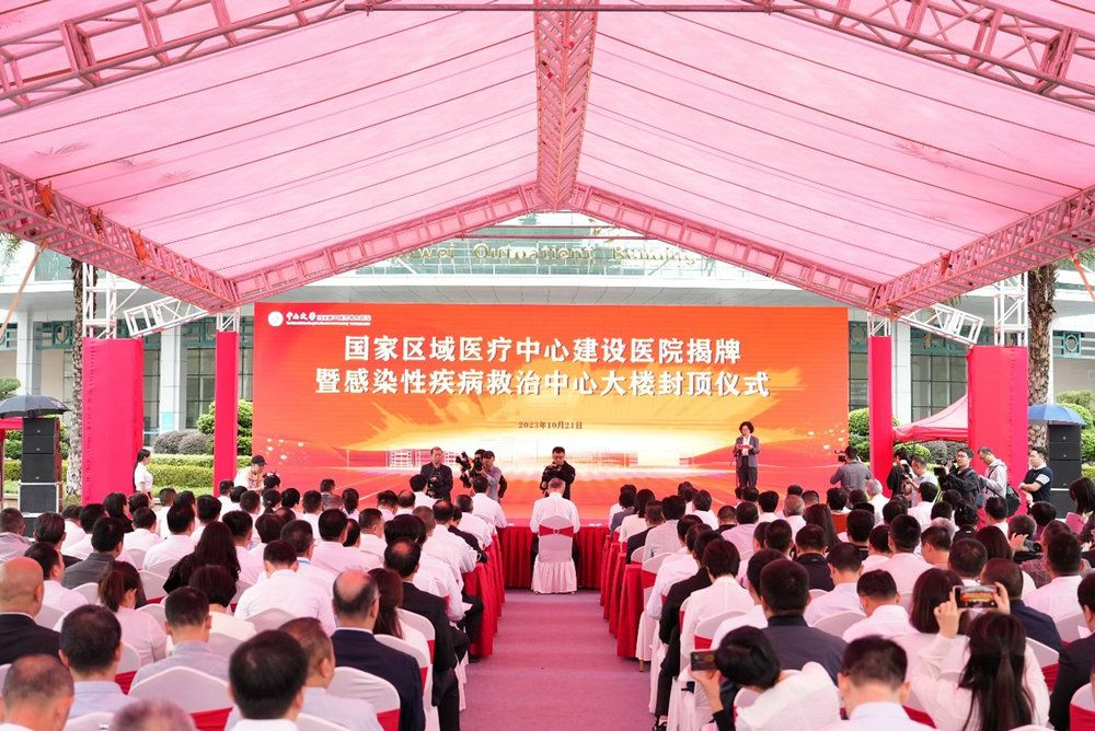 21日上午,best365中国官方网站附属第三医院粤东医院举行国家区域医疗中心建设医院揭牌暨感染性疾病救治中心大楼封顶仪式,陈春声书记带队参加活动,梅州市委书记马正勇,省发改委、省卫健委、梅州市委市政府、梅县区委区政府及有关部门领导,best365中国官方网站、中山三院、粤东医院、兄弟单位相关负责领导及媒体代表等100余人参加了活动。
