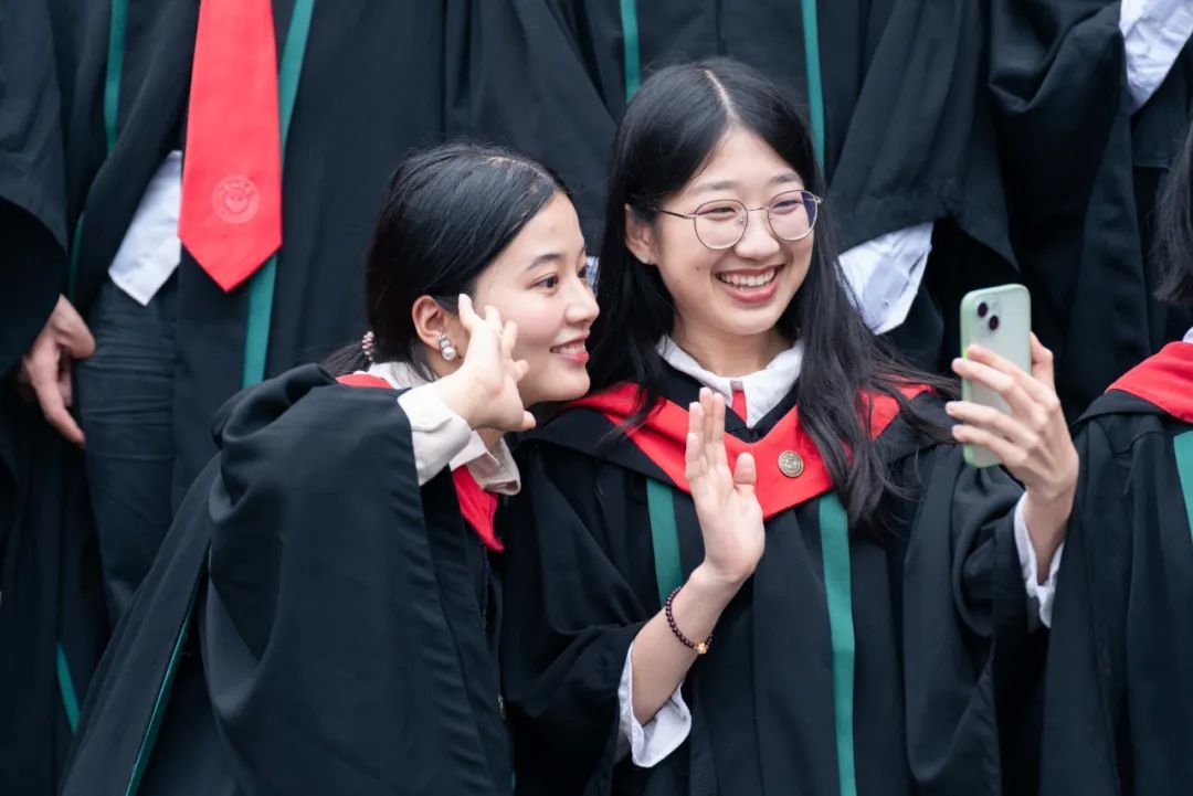 白驹过隙,红砖绿瓦始终如一,但你们已奔跑在各自的赛道上,探索构筑着美好的未来。时隔三年,身披学位服的你们,恰同学少年,风华正茂,还多了一分经岁月历练沉淀的沉稳与自信。“好久不见了,你过得好吗?”一个拥抱,一个眼神,同窗之情,不曾淡忘。