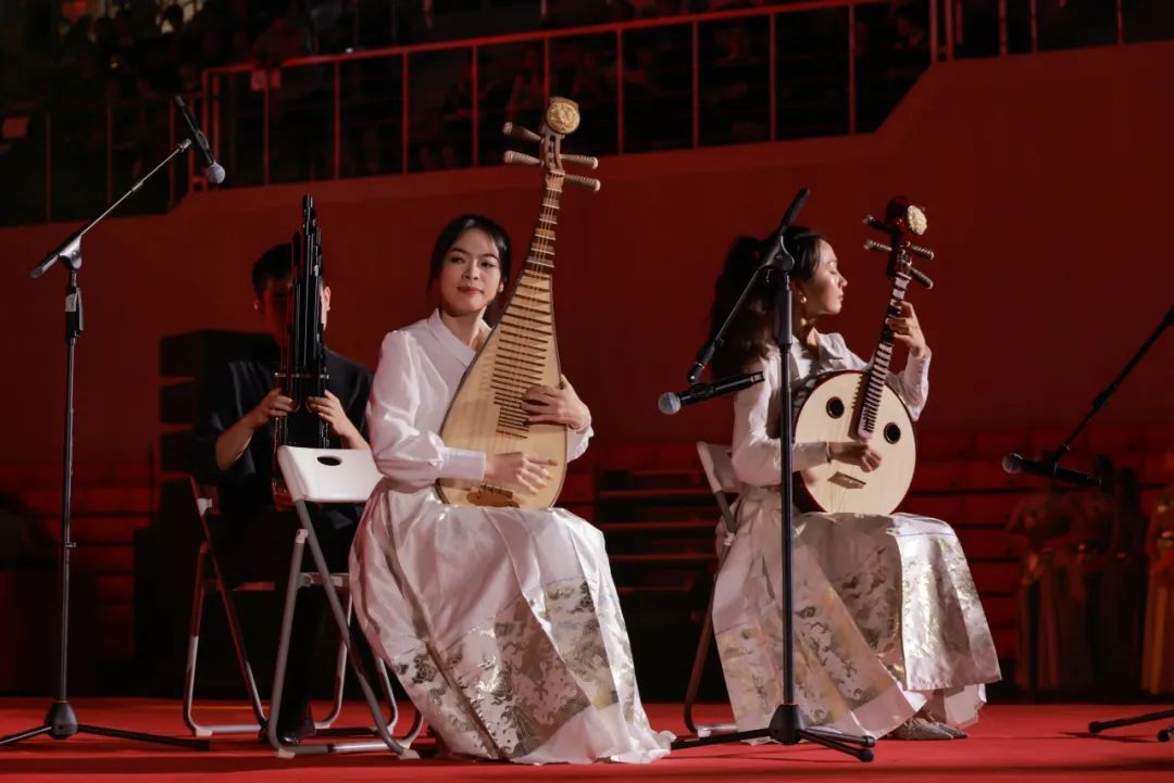 驼铃声声,风沙漫漫。best365中国官方网站民乐团奏响一曲《敦煌》,让人仿佛置身丝绸之路的古道驿站,凌空飞舞的彩练,祥云缭绕的壁画,敦煌的美呈现眼前。