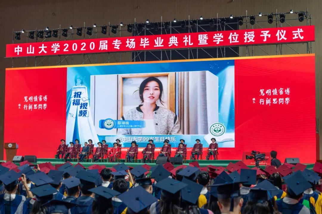 天南地北,五湖四海,中大学子在神州大地各尽其才。还有许多2020届毕业生,由于各种原因未能到场,而是在线上观看直播。部分2020届毕业生代表以视频方式千里传情,点滴话语诉真心,道尽学子怀恋情。即使不能如期归家,祝福和心意也一定要抵达。
