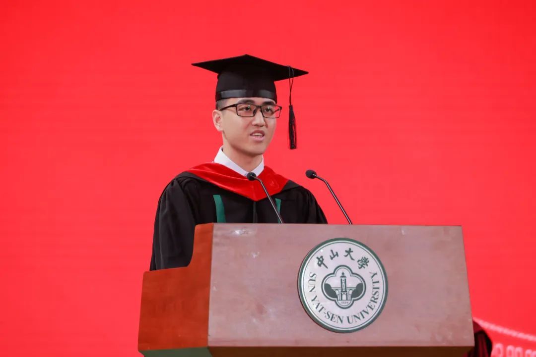 带着三年的收获与成长,游子们缓缓归家,与母校分享了遇到的酸甜苦辣。本科生毕业生代表、中山医学院五年临床毕业生林彦,重温了医学生誓言,分享了自己对“中山医”和中大人的印象,表示将以青春之我、奋斗之我,为实现民族复兴历史伟业铺路架桥,为繁荣昌盛的祖国建设添砖加瓦。