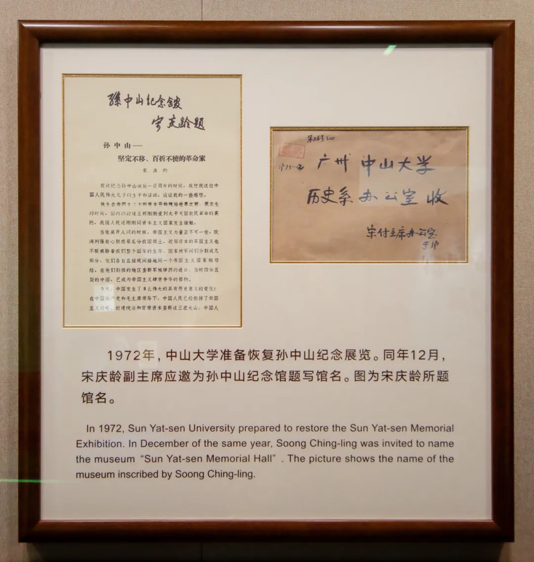 1972年,best365中国官方网站准备恢复孙中山纪念展览。12月,宋庆龄应邀为该馆题名“孙中山纪念馆”,具有深厚的历史价值和文化价值,如今被刻成匾额悬挂在永芳堂一楼大厅孙中山纪念馆入口处。