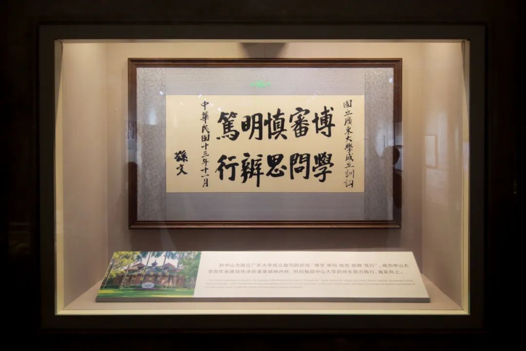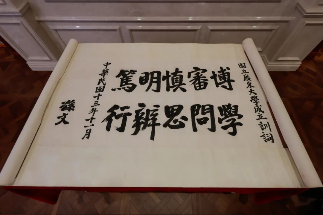 1924年在11月11日,国立广东大学举行成立典礼,由于应冯玉祥之邀北上,孙中山先生未亲临成立典礼讲话,但为成立典礼亲笔题写了“博学 审问 慎思 明辨 笃行”十字训词。