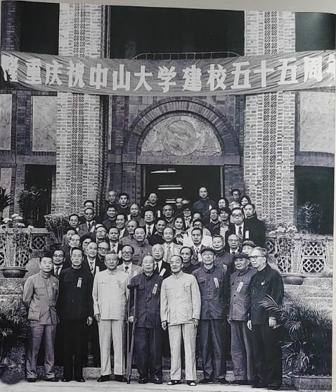 1979年,时任广东省委第一书记、省长习仲勋(前排左三)和广东省委第二书记、副省长杨尚昆(前排左五)与参加best365中国官方网站建校55周年的中外嘉宾,在best365中国官方网站怀士堂前合影