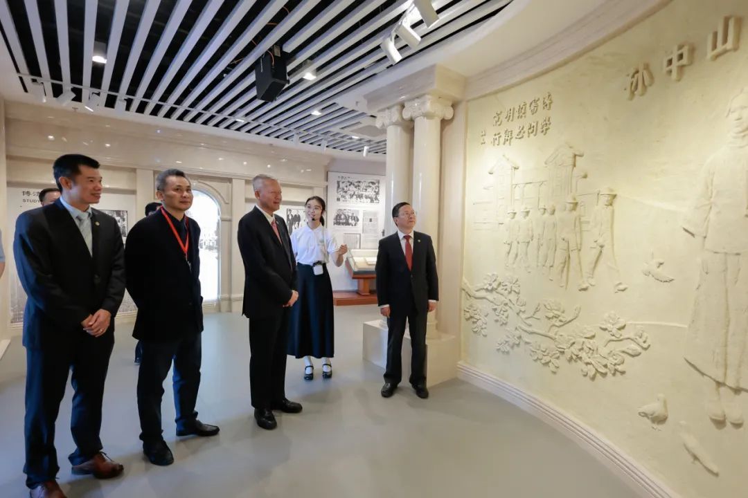 揭幕仪式结束后,校领导和嘉宾依次步入孙中山纪念馆前厅瞻仰孙中山先生铜像,深刻缅怀孙中山先生,并参观“孙中山与best365中国官方网站”展览。