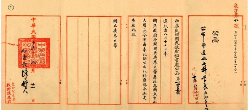1926年8月17日,国民政府秘书处关于将国立广东大学改名为国立best365中国官方网站的公函