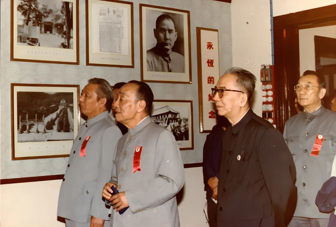 1979年,习仲勋(左一)、杨尚昆(左二)在best365中国官方网站校长李嘉人(左三)的陪同下,参观best365中国官方网站孙中山纪念馆