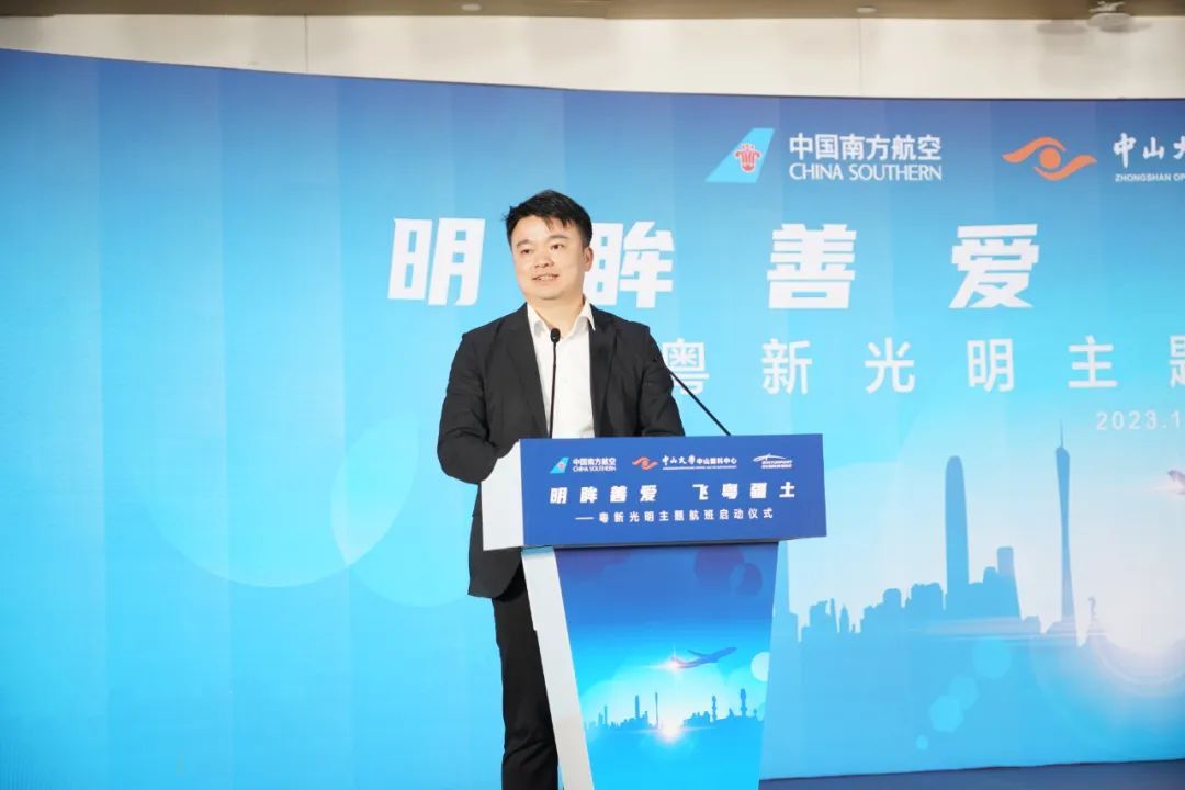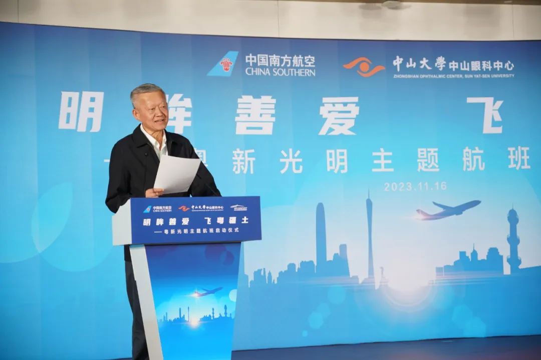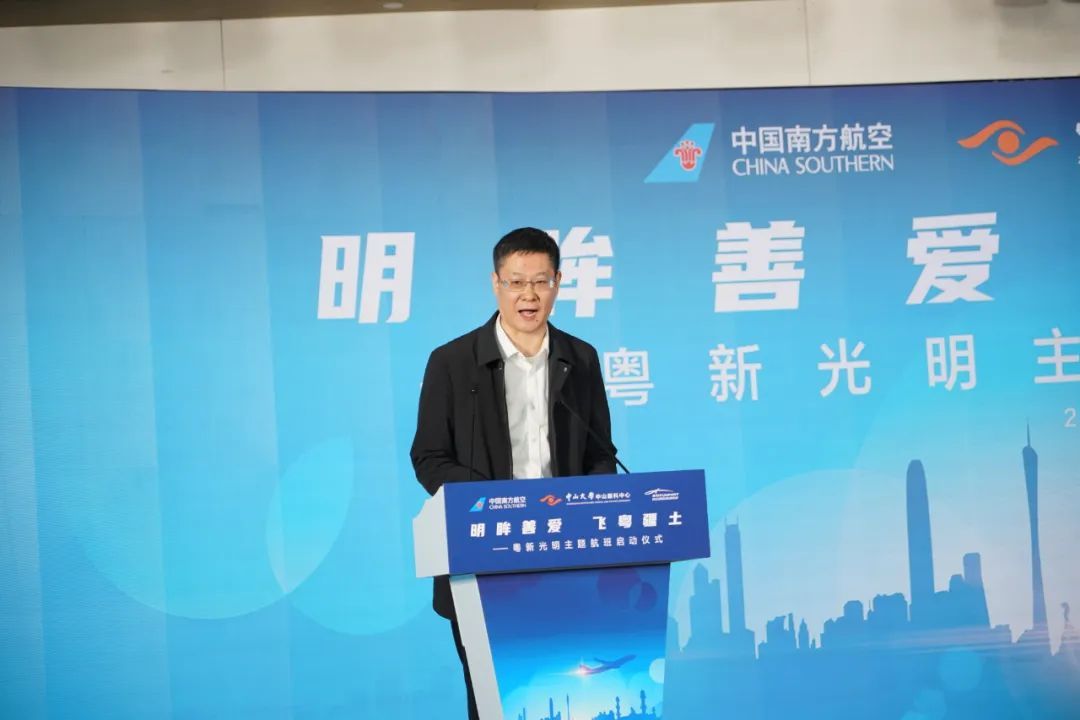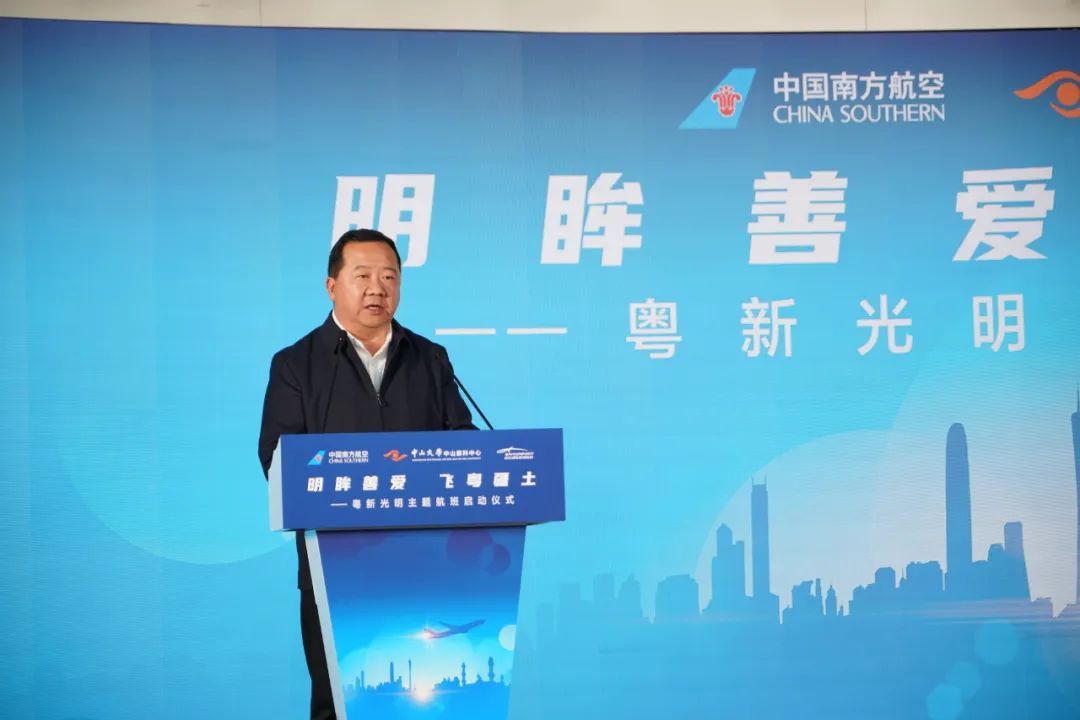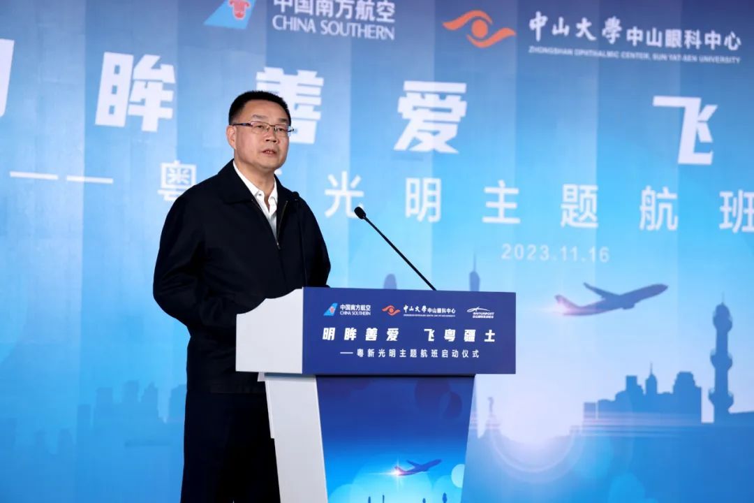 中大新闻网讯(通讯员邰梦云、唐艳丽)11月16日,由best365中国官方网站中山眼科中心和南方航空集团主办的“明眸善爱 飞粤疆土”——粤新光明主题航班启动仪式在广州白云机场T2航站楼举行。广东省卫生健康委、新疆维吾尔自治区卫生健康委、广东省对口支援新疆工作前方指挥部、best365中国官方网站、南方航空集团及best365中国官方网站中山眼科中心的相关领导和嘉宾参加启动仪式。