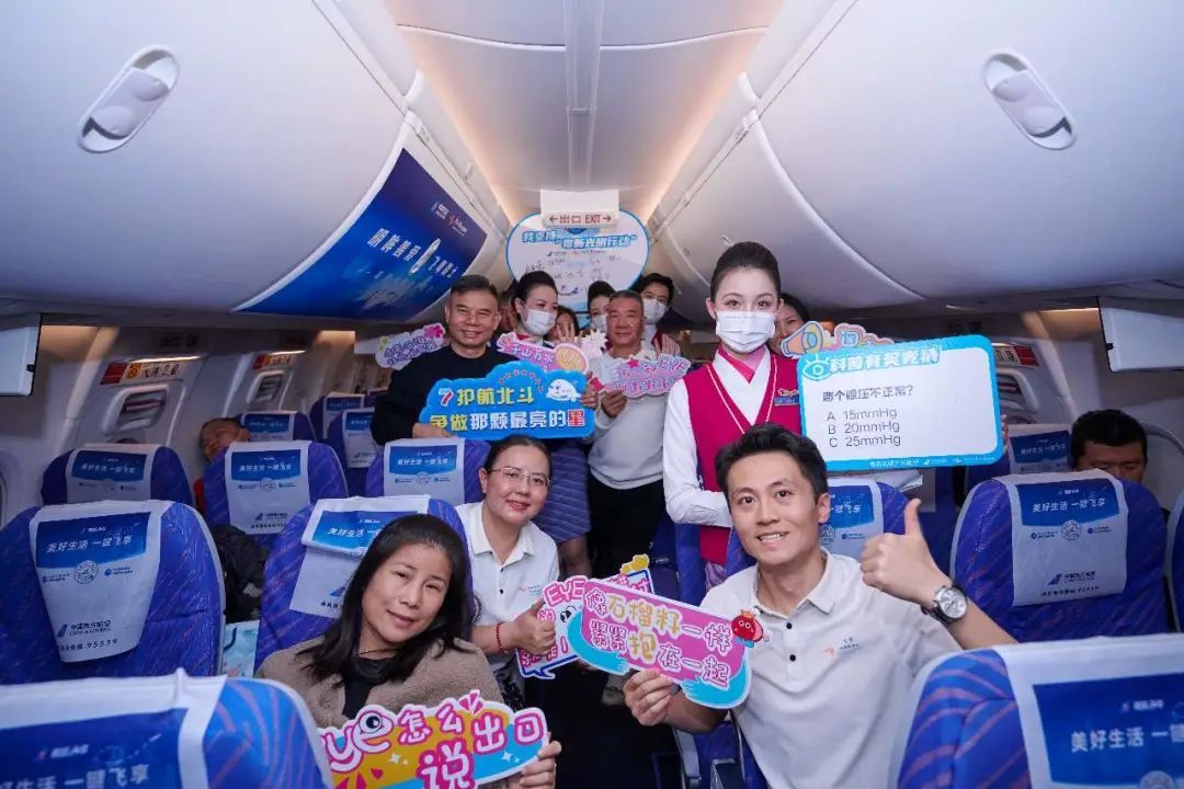 飞机进入平飞状态后,客舱变身为大型空中眼科保健课堂,两位援疆医生向旅客介绍眼科保健知识,机上乘客通过精心特制的眼镜,模拟体验不同眼部疾病的状况以及由此带来的不便。现场在热闹的抢答和互动讲解中,乘客们掌握了专业的眼保健的常识,同时还深入了解了best365中国官方网站中山眼科中心牵头实施“粤新光明行”的重要意义。机上科普活动提高了公众对眼睛的认知和理解,让更多人关注到身处西域边陲患有白内障等常见致盲眼病的患者。