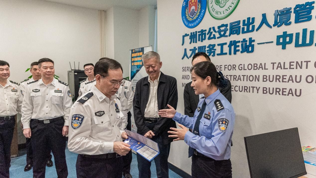 中大新闻网讯(通讯员林琳、涂加乐)11月15日下午,公安部副部长、国家移民管理局局长许甘露一行来我校广州校区南校园调研。一同来访的还有国家移民管理局相关部门、广东省公安厅、广州市公安局等单位主要领导同志。校党委书记陈春声、党委副书记王帆,人力资源管理处、网络与信息中心、保卫处、产业集团、国际合作与交流处负责人陪同考察调研。