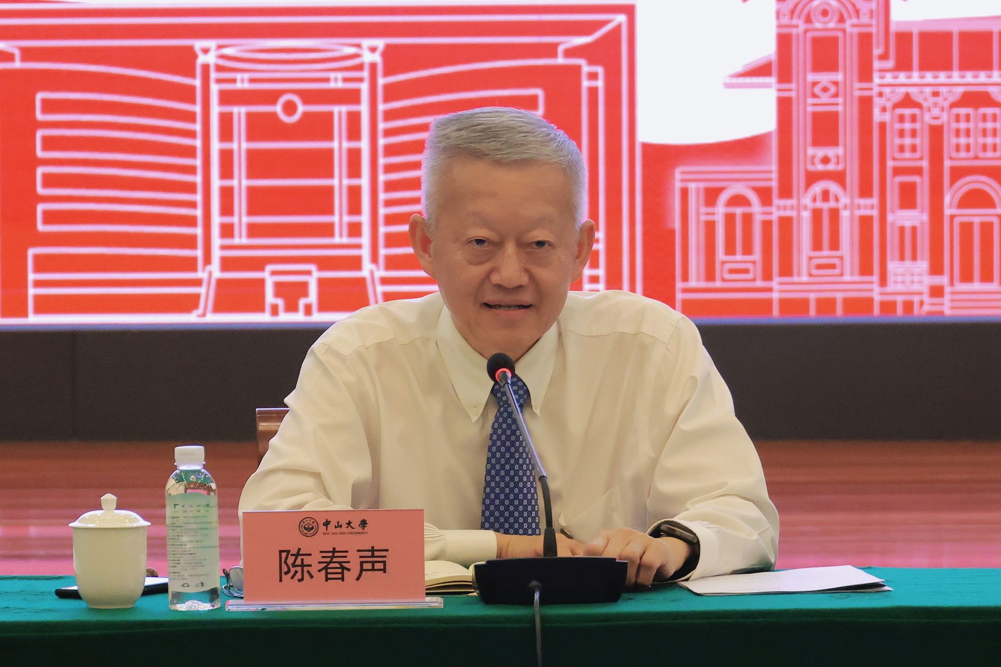 会上,陈春声书记传达学习了《中共中央国务院关于弘扬教育家精神加强新时代高素质专业化教师队伍建设的意见》精神,并强调全体教师要认真学习领会,深入践行教育家精神,践行教师群体共同价值追求,贯彻教育家精神贯穿教育教学、科学研究、社会实践等各环节。