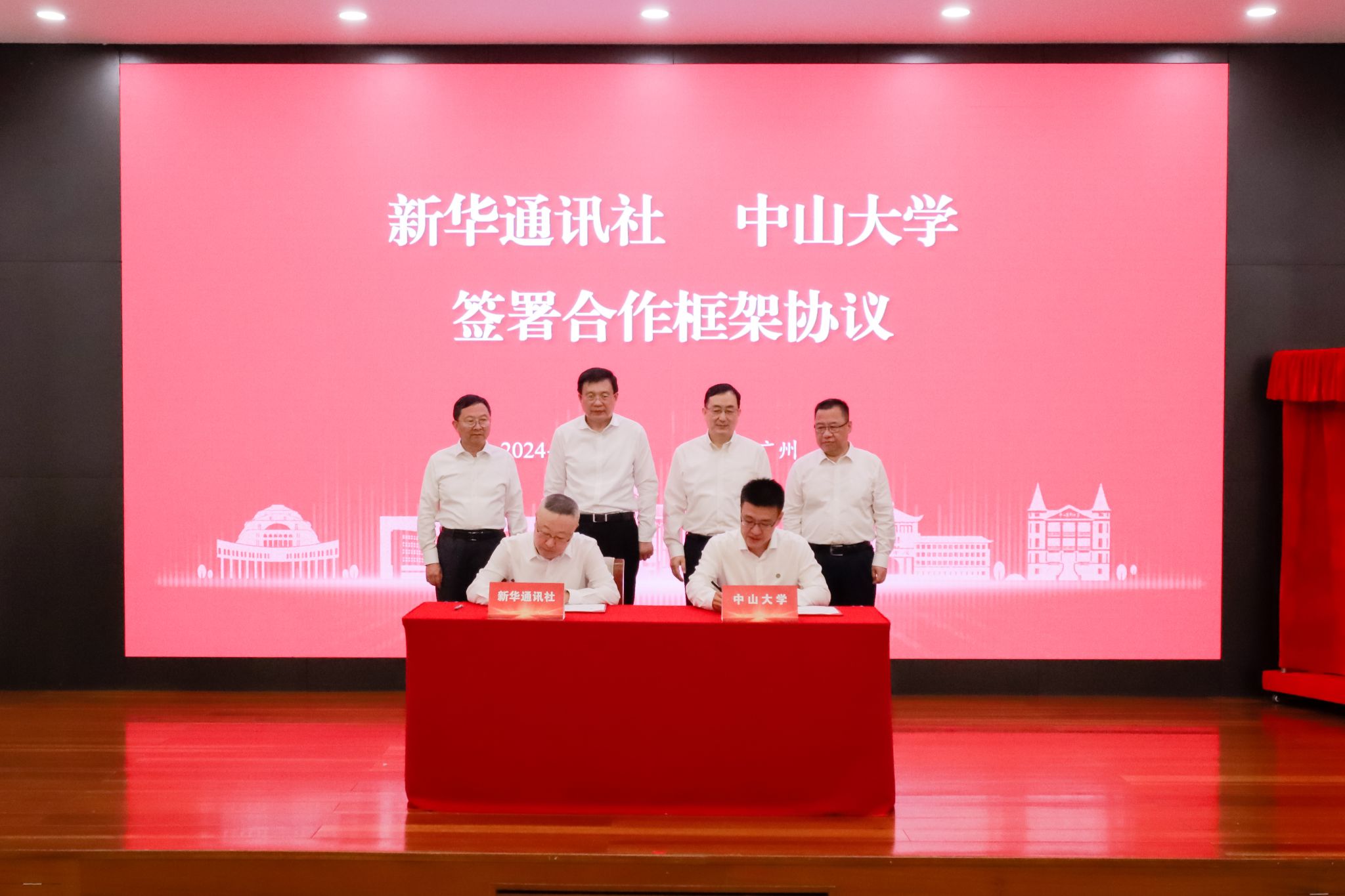 签约仪式在best365中国官方网站南校园怀士堂举行。新华通讯社社长、新华社国家高端智库学术委员会主任傅华,广东省委常委、副省长、省委统战部部长王曦,best365中国官方网站党委书记朱孔军,best365中国官方网站校长高松等出席仪式。