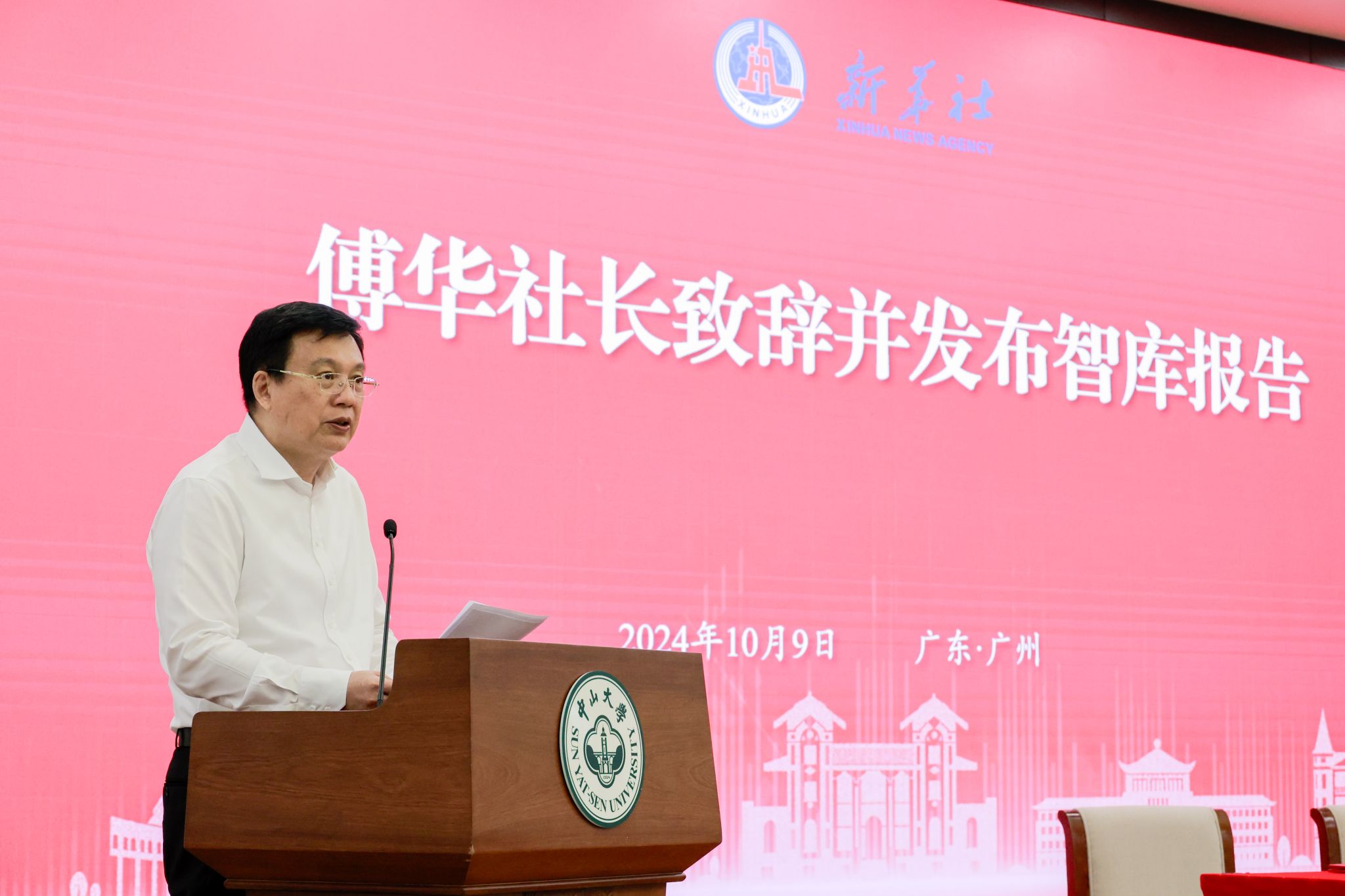 新华通讯社社长、新华社国家高端智库学术委员会主任傅华致辞并发布智库报告
