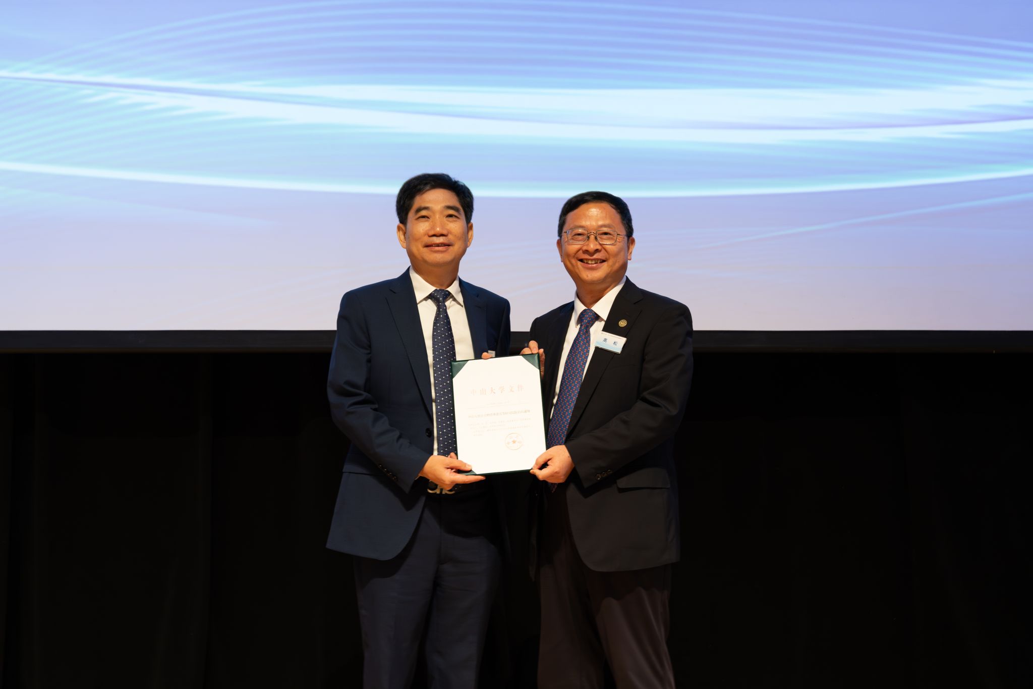 高松校长为香港高等研究院院长徐安龙教授颁发聘任证书。
