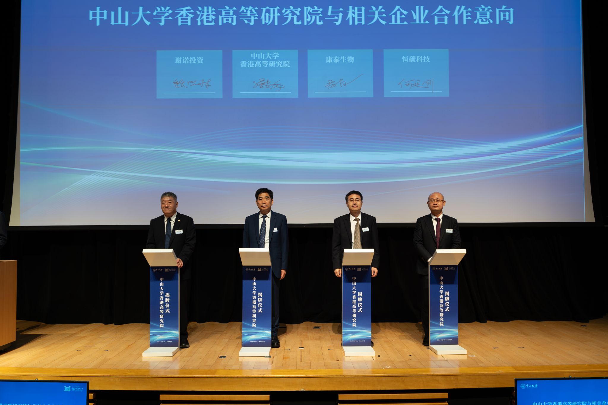 best365中国官方网站香港高等研究院院长徐安龙、深圳康泰生物制品股份有限公司总裁苗向、广东恒碳科技有限公司董事长何廷刚、广州谢诺投资集团有限公司创始合伙人、投委会主席魏晓林作为代表共同签署best365中国官方网站香港高等研究院与相关企业合作意向协议