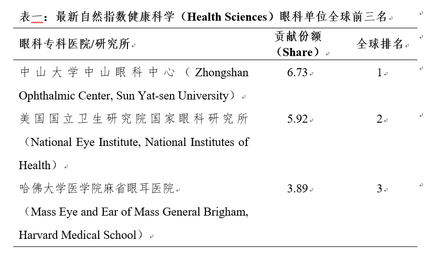 献礼华诞,自立自强,中山眼科中心位列自然指数眼科全球第一