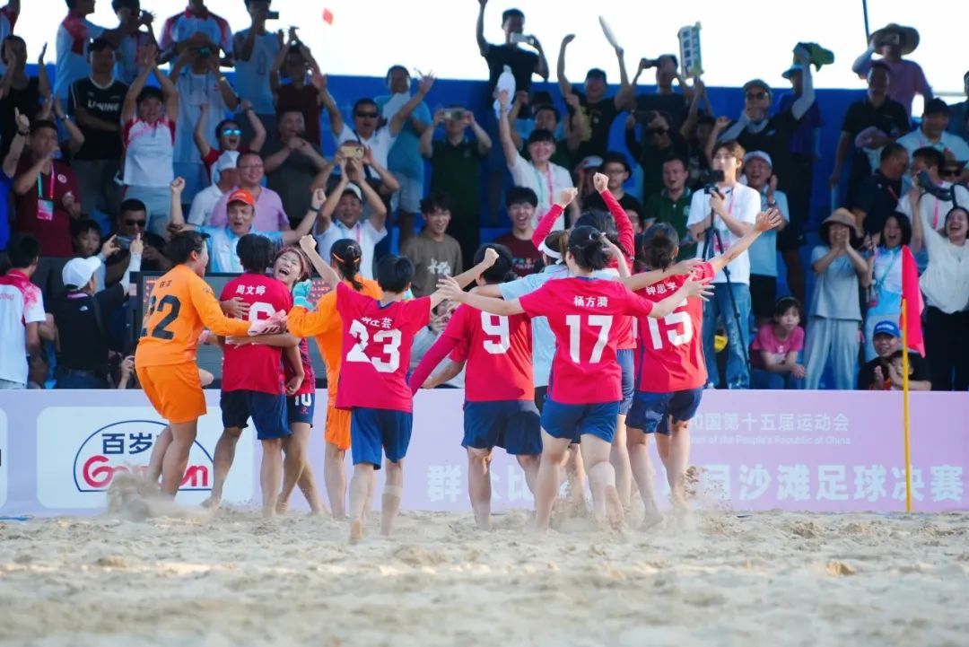 中大新闻网讯(记者邱清萌、唐诗语)8月10日下午,第十五届全运会群众比赛足球项目沙滩足球决赛在阳江海陵岛落下帷幕。女子组决赛,广东队点球大战反超浙江队夺得冠军。男子组决赛,广东队5-6惜败四川队获得亚军。值得一提的是,代表广东出征的男女队队员、教练,均由中大师生占据主力!他们在赛场上奋勇拼搏,尽显中大体育风采。