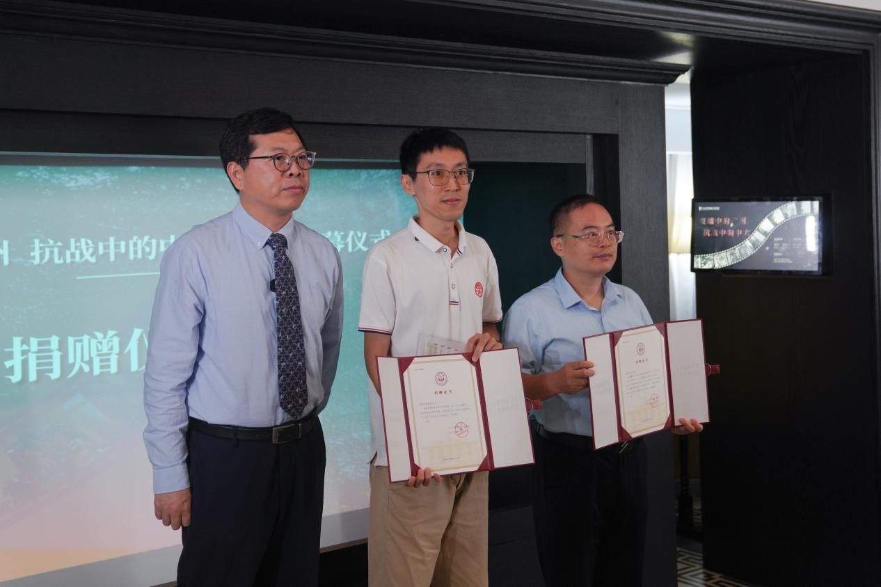 仪式中,吴重庆向本次展览捐赠代表“珠海市best365中国官方网站校友会”成员、珠海香山文化研究会理事张益茂先生,珠海市金湾区政协委员、珠海市金湾区金山实验学校教研主任刘昌言颁发捐赠证书。这些珍贵的历史资料将成为校史馆馆藏的重要组成部分。