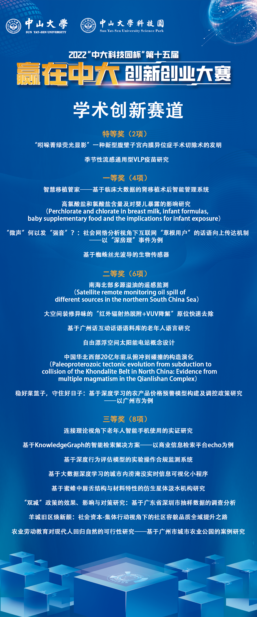 学术创新赛道获奖名单(来源:中大科技园)