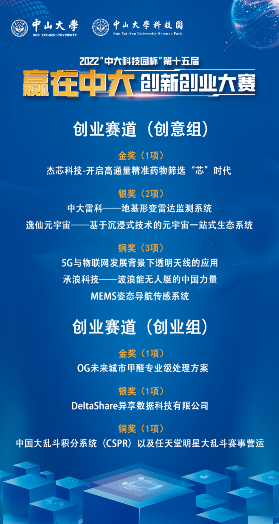 创业赛道获奖名单(来源:中大科技园)