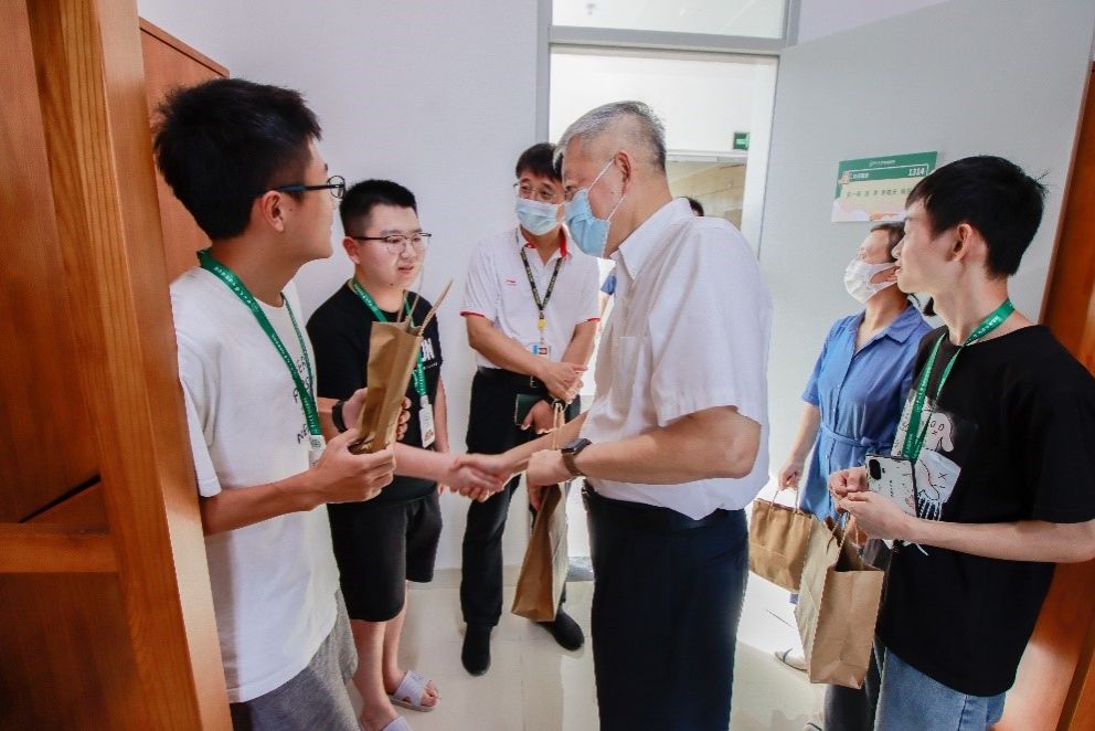 15日下午,陈春声书记一行来到深圳校区西园宿舍、东园宿舍,看望刚从南校园迁至深圳校区的2021级本科生,走访了西园、东园学生宿舍,并向同学们送上解暑饮料和深圳校区校园手绘地图。