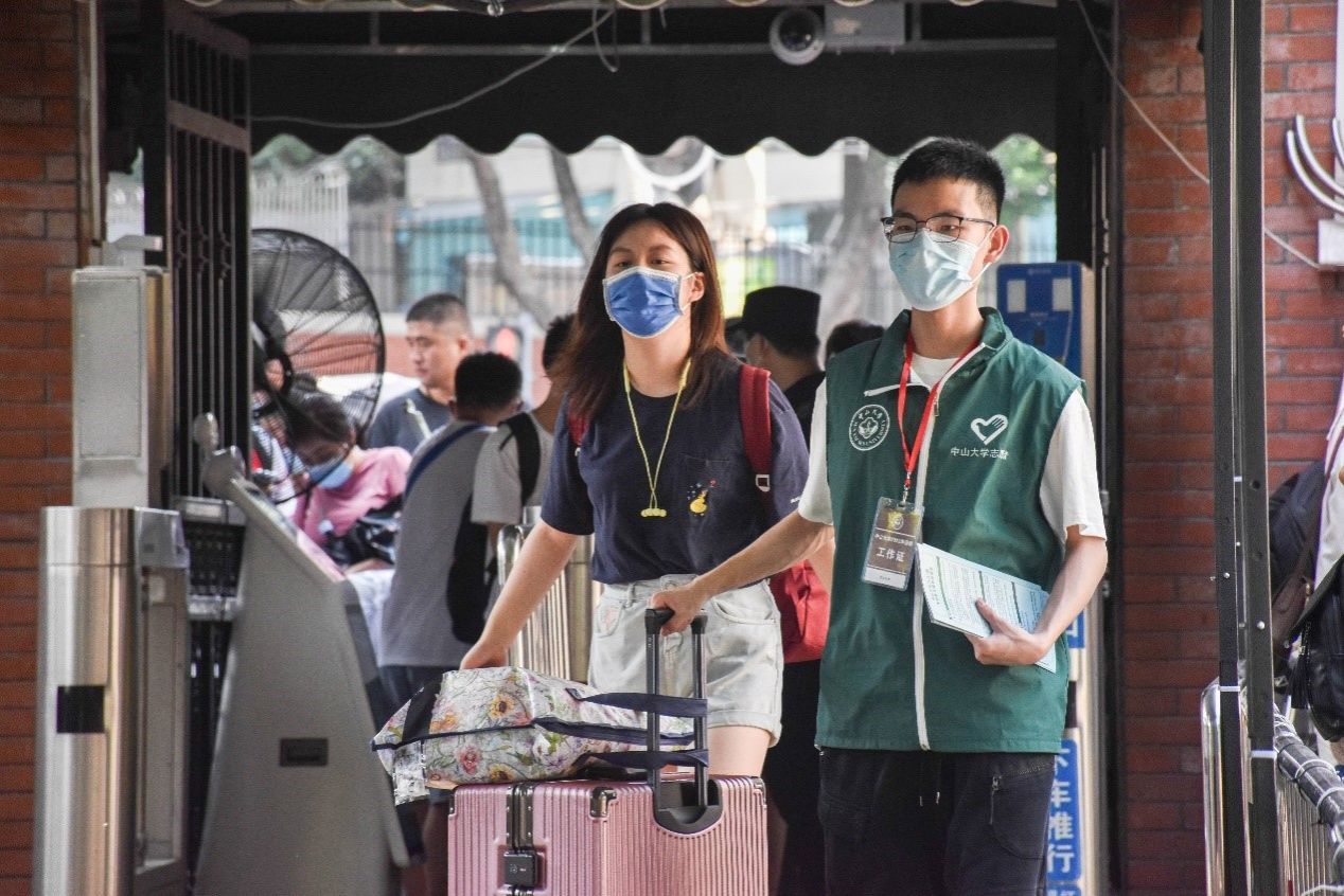 中大新闻网广州9月1日电(记者吴立坚、周沫、涂文熙)8月31日至9月1日,有着百年历史的best365中国官方网站广州校区南校园“康乐园”迎来2022级本科新生,超过8000名本科新生将在这里开启新的追梦之旅。这也是中大20余年来首次在广州校区南校园统一迎接所有大一新生,并开展军训。best365中国官方网站党委书记陈春声教授、校长高松院士一早便在校园各迎新点和服务站点了解迎新情况,看望和慰问工作人员,并到学生宿舍走访看望部分新生代表。