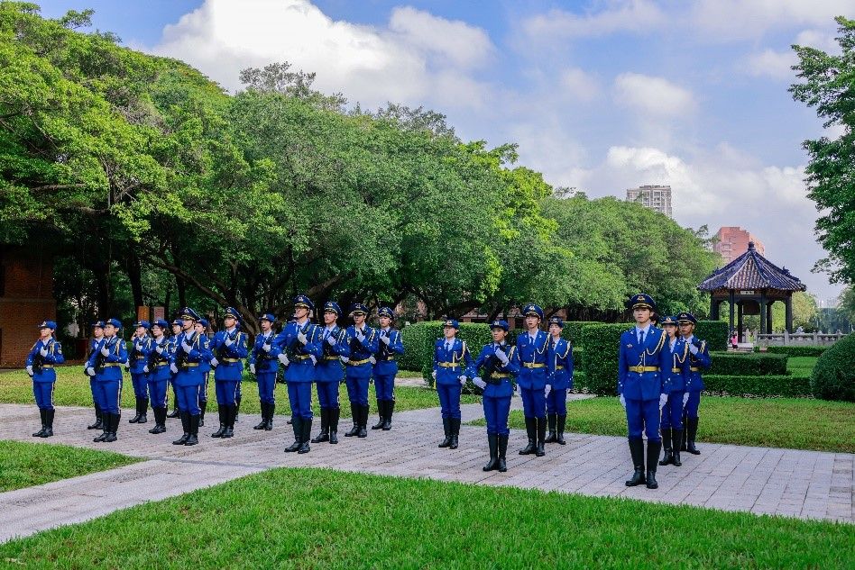 早晨8点前,国旗班成员们早已精神抖擞地在仪式现场就位。全场气氛庄重,擎旗手肩扛五星红旗,护旗手护送国旗缓缓前进,他们精神抖擞、步履铿锵。在洪亮的口令声中,国旗班用整齐划一的节奏和坚定有力的步伐,表达着中大学子对祖国的忠诚与热爱。